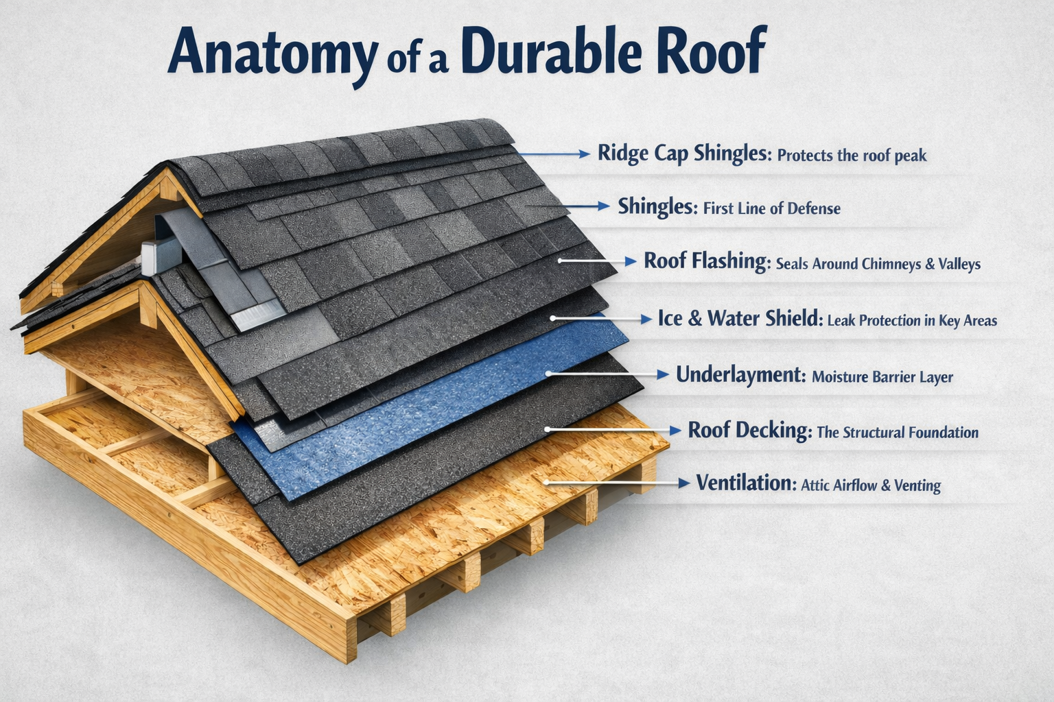 For most people, it’s just the shingles. But what people don’t realize is that there’s a whole lot more to a roof than just shingles. That’s right: shingles are just a part of a much larger system.